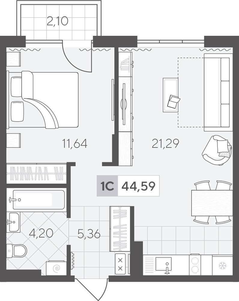 общая 65,23 м2, жилая 11,64 м2, кухни 21,29 м2 |