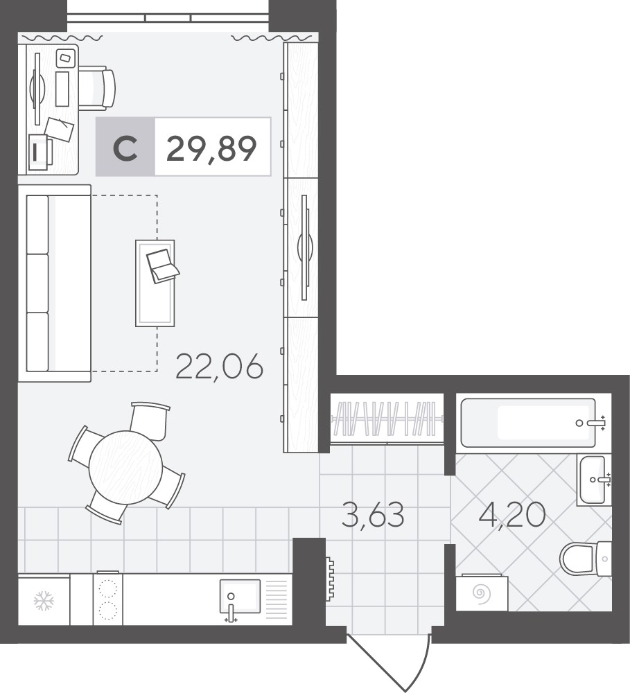 общая 45,19 м2, жилая 22,06 м2, кухни 8,37 м2 |