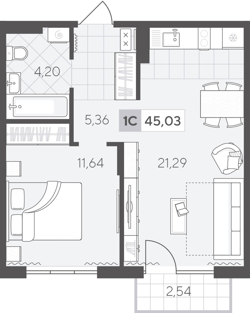 общая 38,13 м2, жилая 11,64 м2, кухни 21,29 м2 |