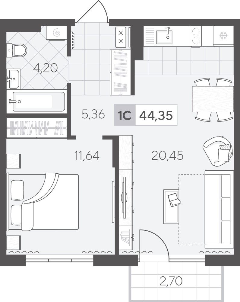 общая 37,24 м2, жилая 11,64 м2, кухни 20,45 м2 |
