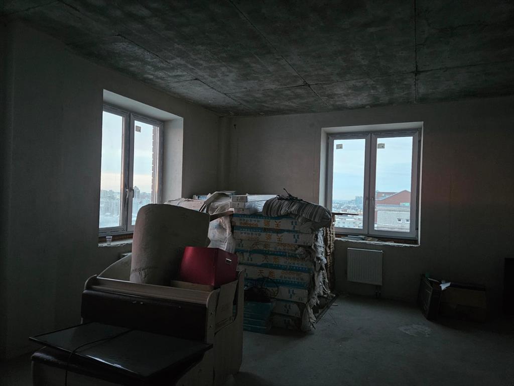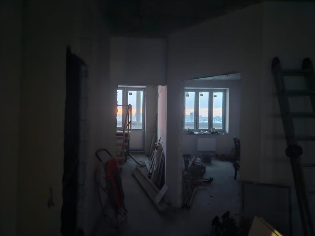 В квартире улучшенная черновая отделка, сделана стяжка пола, выровнены под маяк стены, большая кухня, несколько санузлов, пластиковые окна, входная металлическая дверь, установлены радиаторы отопления, счётчики, проведена электропроводка.